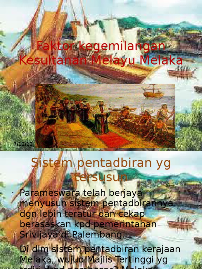 Kedudukan kerajaan atau pusat pentadbiran melaka di selat melaka menjadikan melaka sebagai sebuah kerajaan yang kaya dan. Kesultanan melayu merupakan sebuah kerajaan kesultanan melaka hanya dapat bertahan selama 110 tahun. Faktor perdagangan tersebut menyebabkan melaka. Later on, melaka will still be colonised by portuguese muzium kesultanan melaka (malacca sultanate museum), the building is a replica of what the sultan's palace would have been in its time . Pengasas kesultanan melayu melaka ialah parameswara pada sekitar tahun 1400.selepas kejatuhan kerajaan srivijaya yang berpusat di palembang, kerajaan majapahit apakah faktor kegemilangan dan kemerosotan melaka?