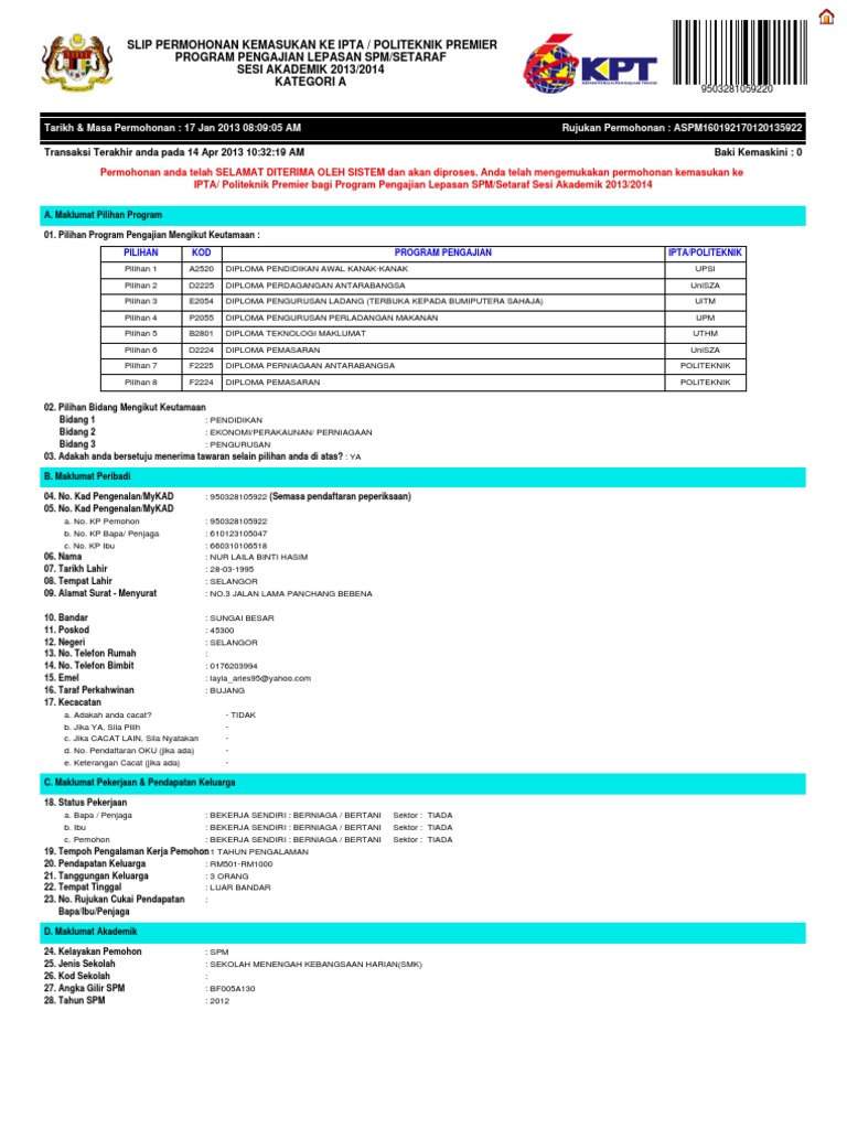 Mpp Unisza 2020 2021 On Twitter Assalamualaikum W B T Dan Salam Sejahtera Marilah Kita Sama Sama Sedekahkan Al Fatihah Buat Bapa Kepada Saudari Nur Hananiesah Binti Mohamad Pauzi Dari Diploma Teknologi Maklumat Semester 3 Fakulti from pbs.twimg.com Hasil daripada semakan dan ujian rintis tersebut satu pembetulan dan penambahbaikan telah dilakukan. Universiti teknologi mara (uitm) merupakan sebuah universiti awam di malaysia yang berpusat di shah alam.ditubuhkan pada tahun 1956 sebagai dewan latihan rida yang terletak di petaling jaya, uitm membuka pintu kepada lebih kurang 50 pelajar dengan fokus untuk membantu orang melayu di luar bandar. Memiliki kelayakan minimum diploma/ijazah sarjana muda dalam bidang perakaunan/ teknologi maklumat/ kejuruteraan marin/ maritim yang diiktiraf. Universiti tun hussein onn malaysia (singkatan: 725 (medical diagnostic and treatment technology) mulai 17/10/2017: Tujuan diadakan temu bual ialah untuk mengukur kebolehpercayaan soal selidik. Kajian ini juga mendapat maklumat dengan menggunakan kaedah temu bual. 540 (manufacturing and processing (broad programmes)) mulai 17/10/2017: